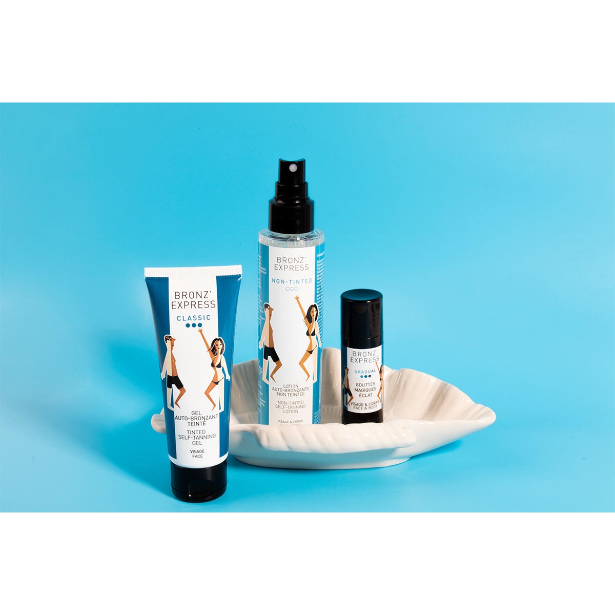 Breng de zelfbruiner op een gereinigde huid. Gebruik de Bronz’Express Applicator voor het lichaam of een wattenschijf voor het aanbrengen op het gezicht en verdeel het product gelijkmatig op de huid.